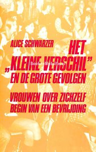 Het “kleine verschil” en de grote gevolgen; vrouwen over zichzelf, begin van een bevrijding | Alice Schwarzer | Feminisme, Vrouwenbeweging, liefde, seks, Patriarchaat | Beschikbaar | Feministische Uitgeverij SARA, 1977, 222 p. Interviews met vrouwen in verschillende maatschappelijke posities en beroepen, en een analyse van hun situatie. |